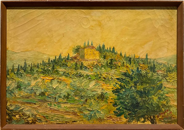 Lotto composto da un olio su tela raffigurante paesaggio (cm 34x49) firmato Pao