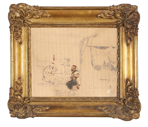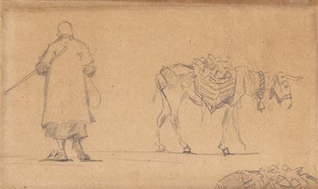 "Lotto composto da un disegno a carboncino su carta e una tecnica mista su carta a soggetto orientalista, di diverse misure"
