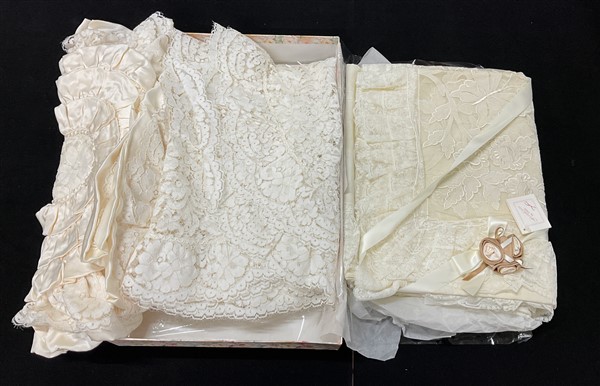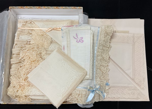Tre cartoni contenenti biancheria per la casa di varie fogge e dimensioni (dife