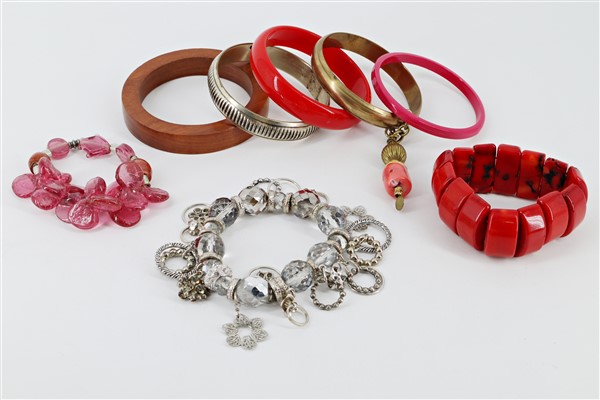 Lotto composto da numerosi pezzi di bigiotteria tra cui collane, spille, orecchini, bracciali in vari materiali stili e colori (difetti e mancanze)