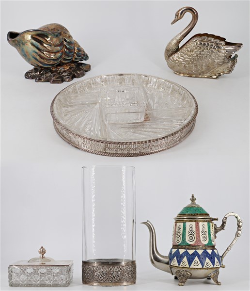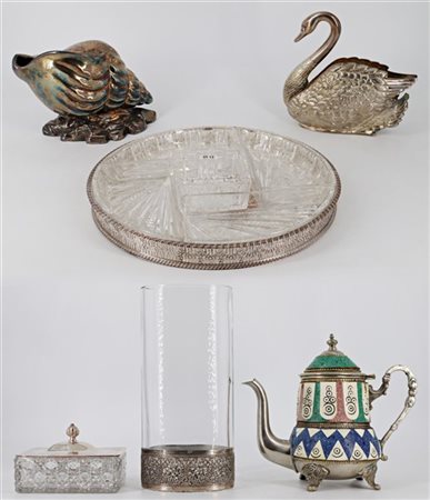 Lotto composto da numerosi oggetti in metallo argentato di forme, usi e decori