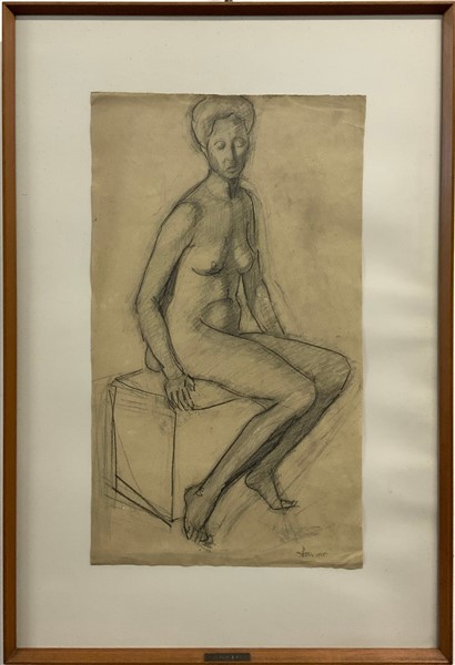 "Studio di nudo" 1955, matita su carta (cm 51,5x30) firmato e datato in basso a destra; etichetta dell'artista al retro