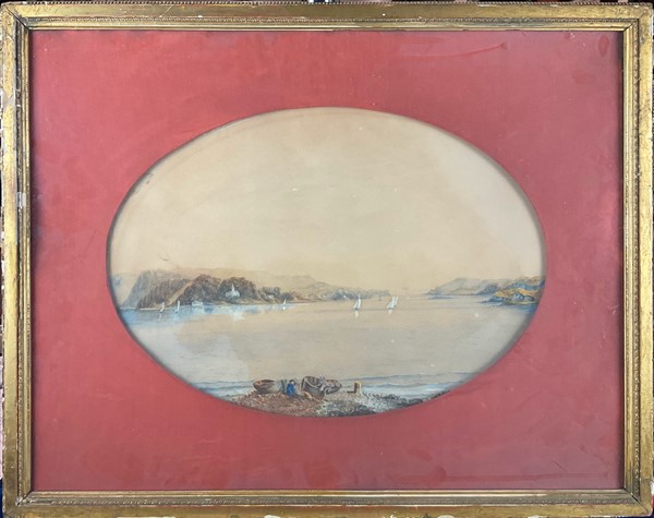Ignoto del secolo XIX "Scorcio lacuste" tecnica mista su carta applicata a ca