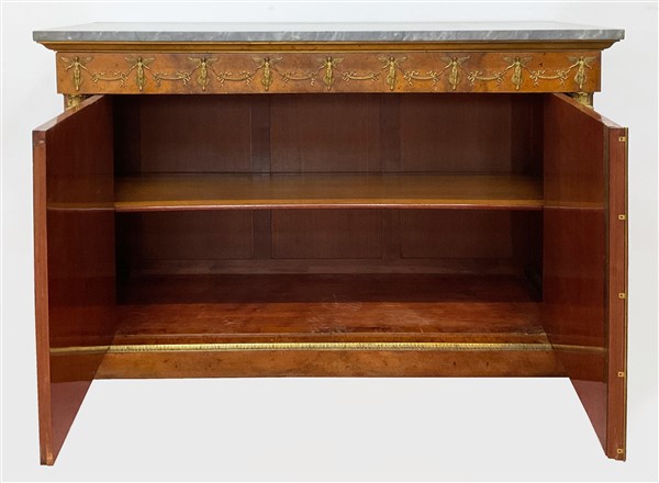 Credenza in stile Impero impiallacciata in radica di tuia a due ante e un casse