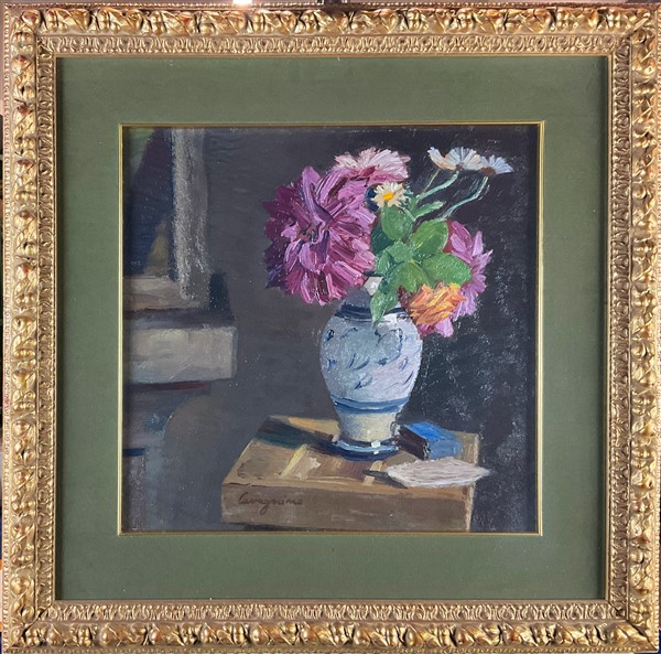Carlo Cavagnino "Composizione con vaso di fiori" olio su compensato (cm 40x42)