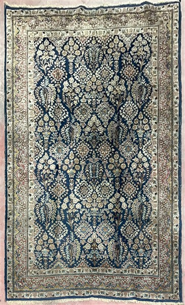 Tappeto Joshagan, Persia, secolo XX. Decoro all over millefleur su campo blu (cm 243x150) (difetti)