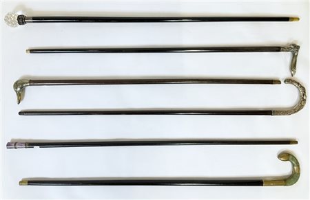 Arte del secolo XIX-XX. Lotto composto da sei diversi bastoni da passeggio con