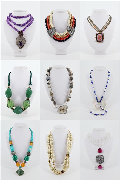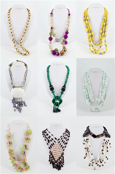 Lotto composto da numerosi pezzi di bigiotteria tra cui collane, spille, orecchini, bracciali in vari materiali stili e colori