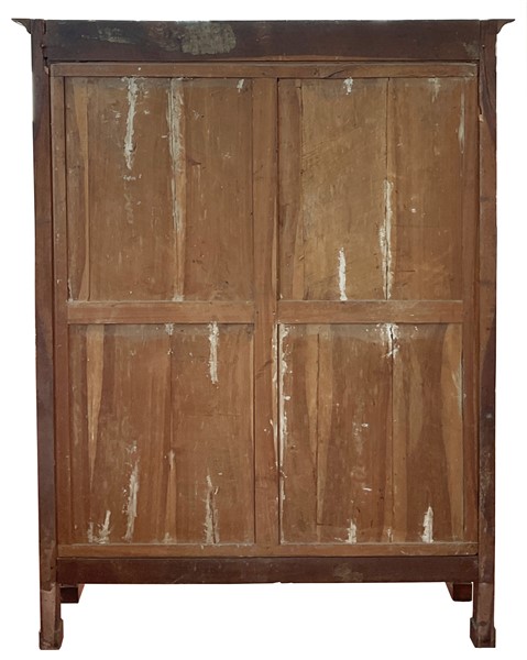Libreria Impero in noce a due ante con vetro, fianchi pannellati, montanti a co