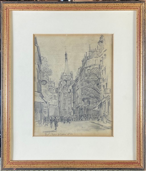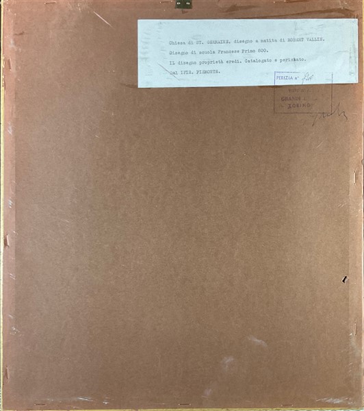 Robert Vallin (attr.) "Chiesa di St Germain" matita su carta (mm 240x195) Sigla