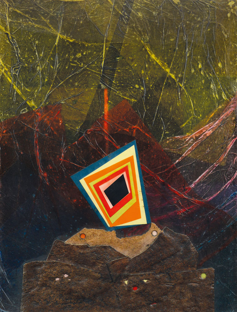 collage e sughero su tavola cm. 117x89, firma al retro, dichiarazione d'autenticità di Roberto Crippa Junior e Archivio Roberto Crippa n° 354 a cura della Galleria d'Arte Pace (MI) su foto, entro teca in plexiglass.