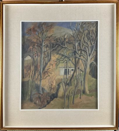 Ida Donati "Paesaggio autunnale" olio su compensato (cm 50x43,5) Al retro: iscr