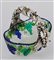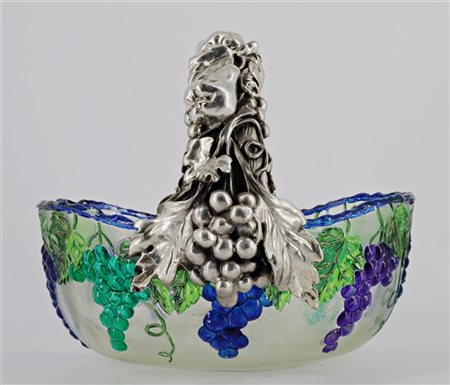 Cestino in vetro policromo a grappoli d'uva con manico laminato in argento a fr