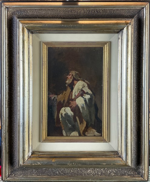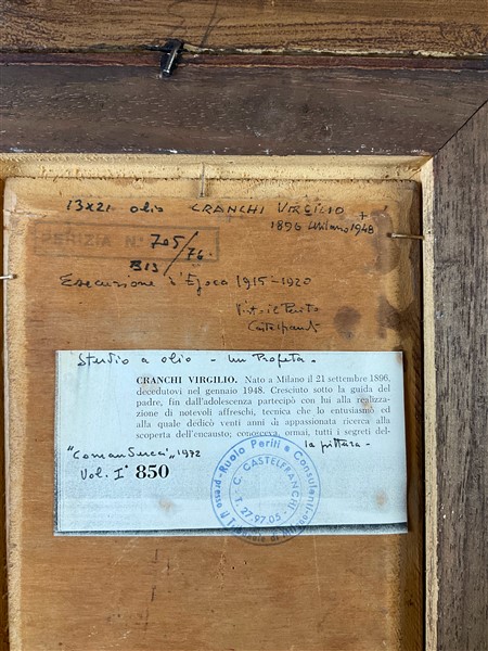Virgilio Cranchi "Studio di figura per profeta" olio su compensato (cm 21x14) f