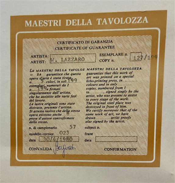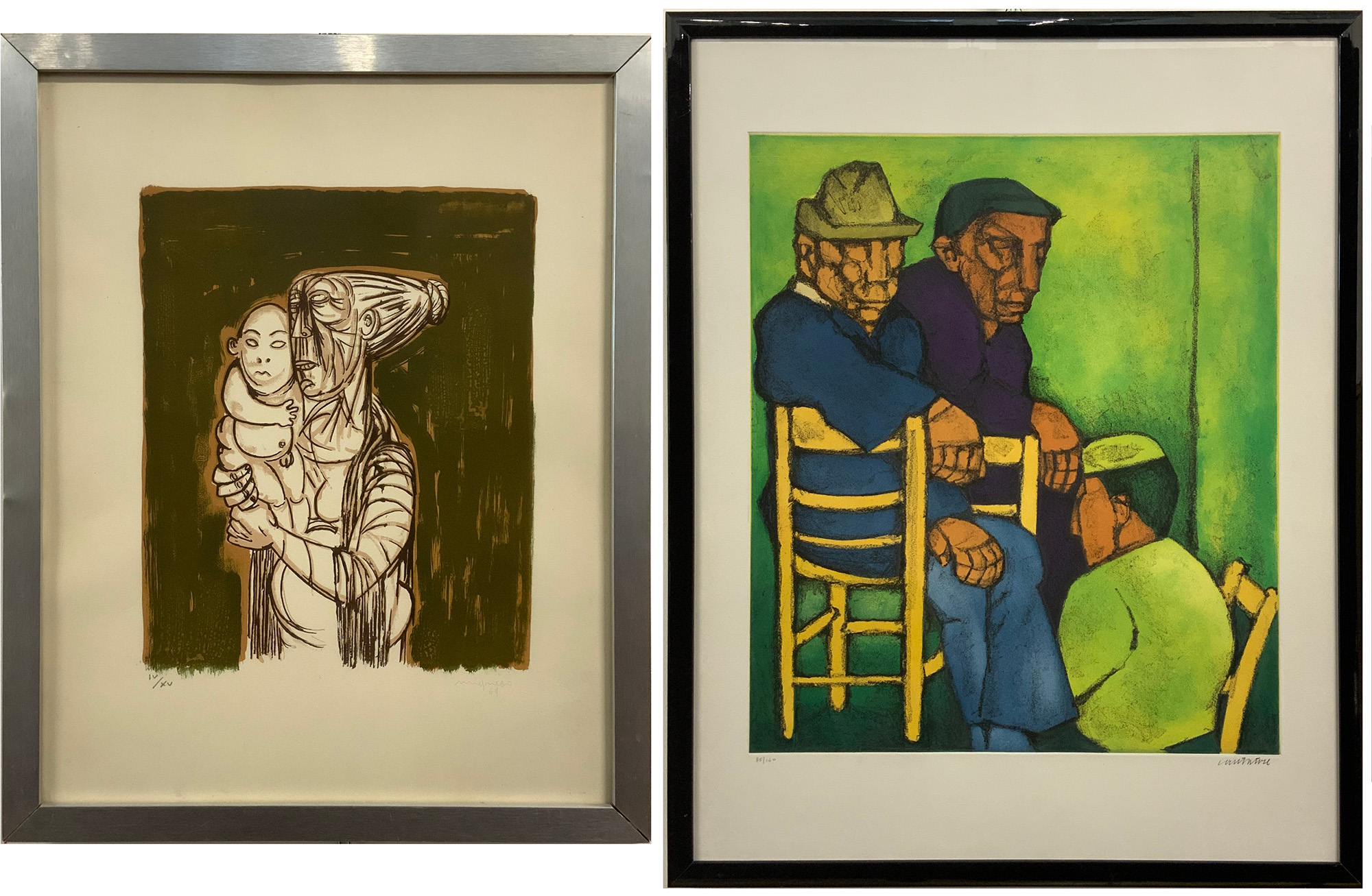Lotto composto da una litografia a colori di Giuseppe Migneco del 1969, firmata e numerata IV/XV (cm 50x40) e un'acquaforte a colori di Domenico Cantatore firmata e numerata 85/150 (foglio cm 75x60)