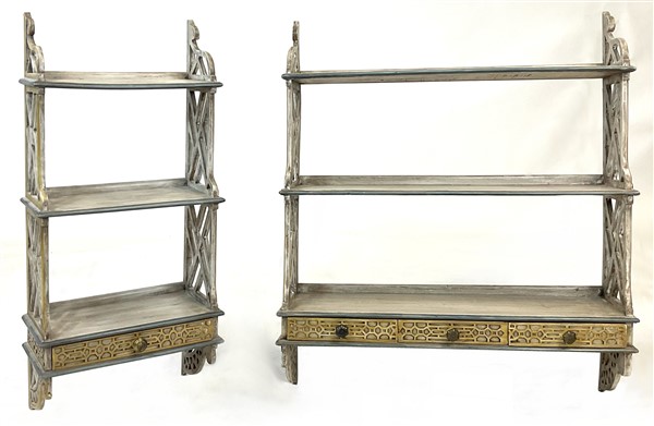 Lot 1274 | Due étagère pensili in legno laccato e dorato con cassetti nella fascia, montan