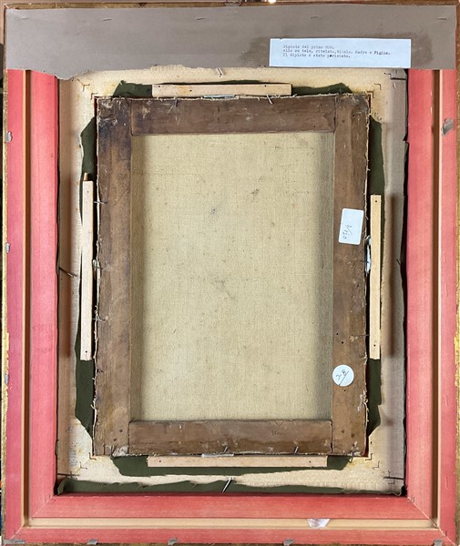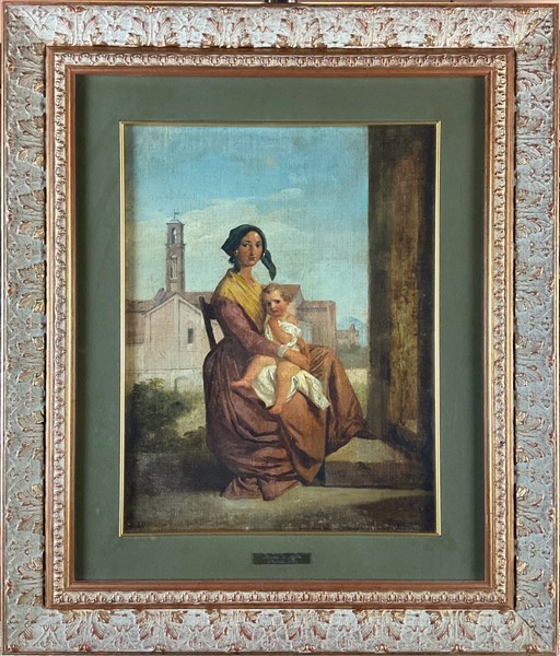 Ignoto del secolo XIX "Madre e figlio" olio su tela (cm 40x30) al retro: cart
