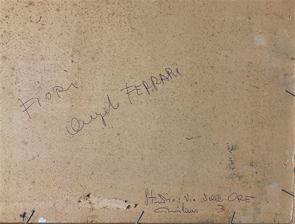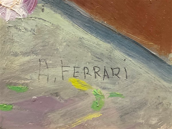 Angelo Ferrari Due oli raffiguranti fiori e paesaggio, su supporti e misure dive