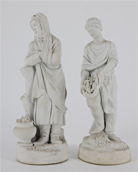 Coppia di figure in biscuit (h. cm 22) (difetti)