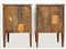 Coppia di comodini lastronati in noce, filettati e intarsiati in legni vari con