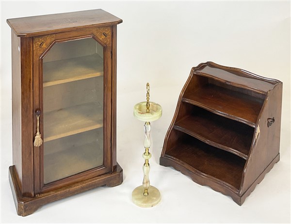 Lotto composto da una vetrinetta, una scaletta da biblioteca ed un posacenere da terra in onice (h max cm 90,5) (difetti)