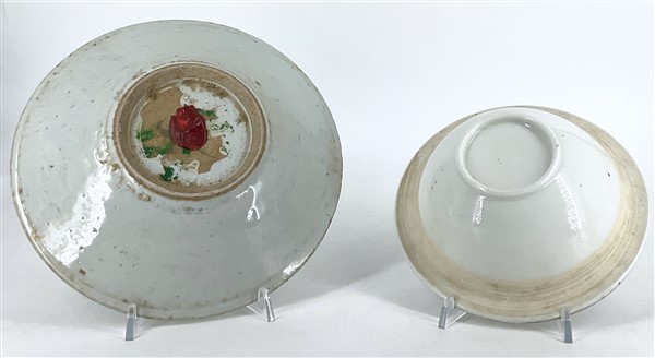 Lotto composto di tre piatti in porcellana, un sigillo e un fermacarte a forma ovoidale in pietra dura