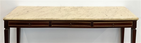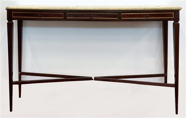 Lot 1350 | Console con fronte a tre cassetti e profili dorati, gambe a obelisco rovesciato