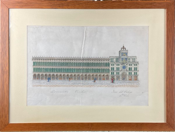 Moretti Dionisio - Quadri Antonio. Quattro incisioni a colori raffiguranti vedute di Venezia (cm 23,5x36) In cornici (difetti)