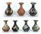 Lotto composto di sette vasetti in metallo cloisonnè entro scatola