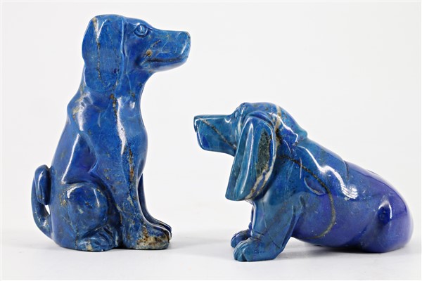 Due figure di cani in sodalite (h. max cm 10) (lievi difetti)
