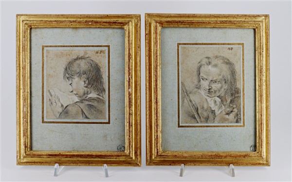 Seguace di Giovanni Battista Piazzetta (1682-1754) "Coppia di disegni raffigur