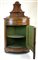 Angoliera con alzata sagomata a due ripiani in legni vari, fronte ad un'anta ed