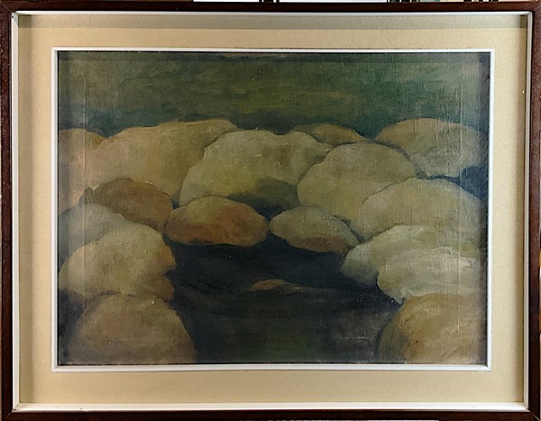 Ida Donati "Scogli" olio su tela (cm 72x53) in cornice (difetti) Provenienza E