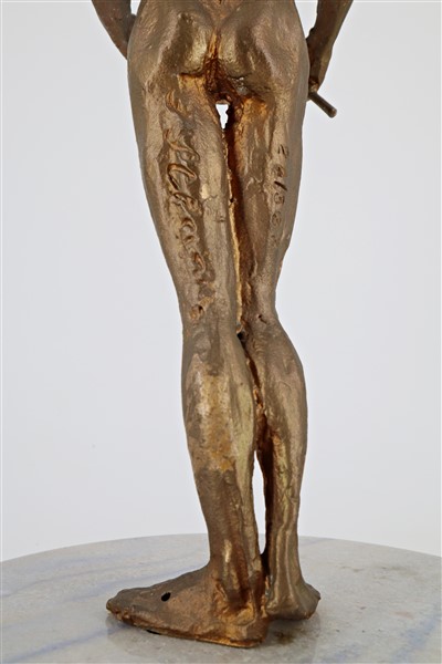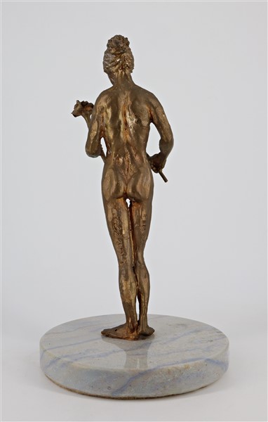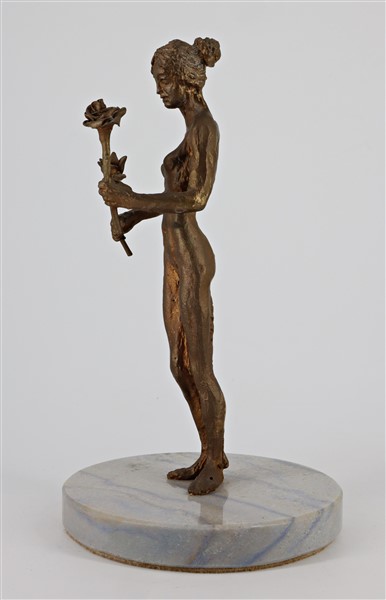 "Figura femminile con fiori" scultura in bronzo poggiante su base circolare in marmo (h. tot cm 38) firmata su una gamba (lievi difetti)