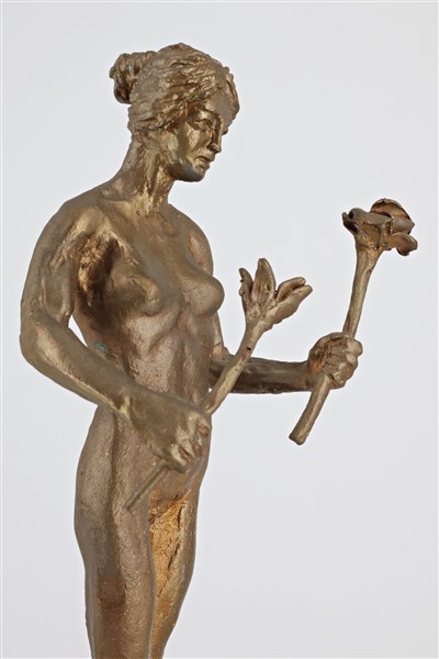 Filippo Stefani "Figura femminile con fiori" scultura in bronzo poggiante su bas