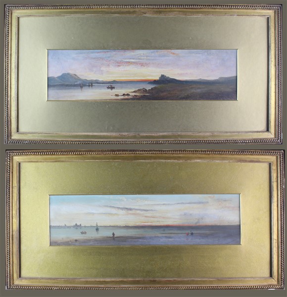 Ignoto del secolo XIX, Coppia di paesaggi olio su cartone (cm 12x45) al retro: