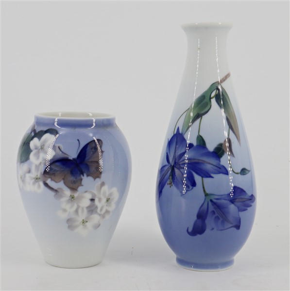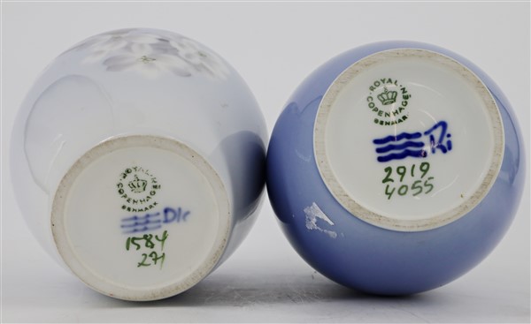 Manifattura Royal Copenhagen. Lotto composto da due vasetti ed un gruppo con fa