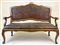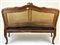 Divano a due posti in noce intagliato con bordure scanalate e dorate, seduta e
