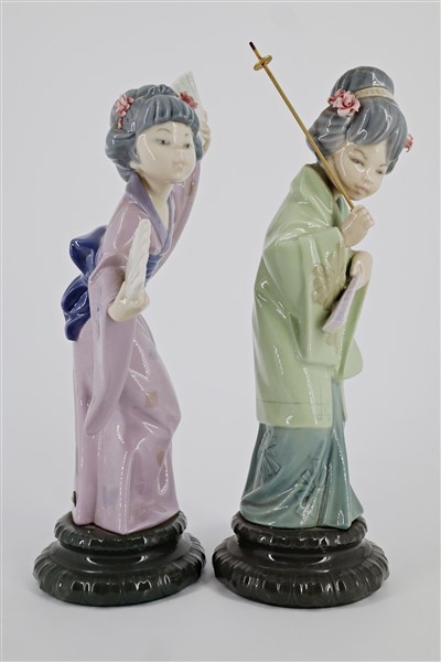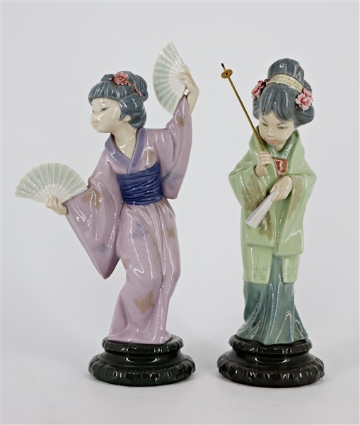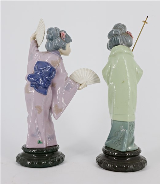 Manifattura Lladrò. Lotto composto da due figure di gheishe in porcellana polic
