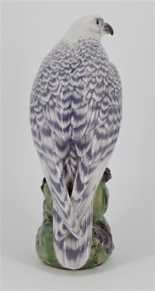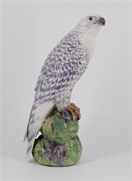 Manifattura Royal Copenhagen. Figura di rapace su roccia in porcellana policroma (h. cm 40) (difetti)
