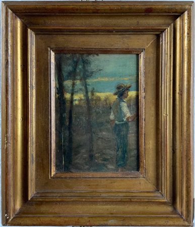Ignoto della seconda metà del secolo XIX "Contadino" olio su tela (cm 15x10,5