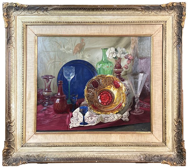 Lot 1546 | Giuseppe Didone "Composizione con vetri e pizzo" 1951 olio su tela (cm 55x60) fi