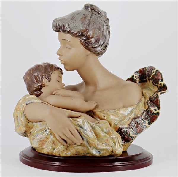 Manifattura Lladrò. Gruppo in porcellana policroma raffigurante una maternità.