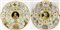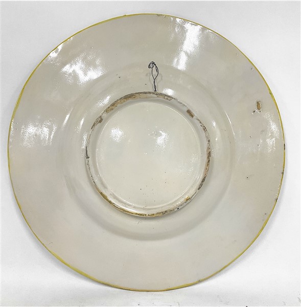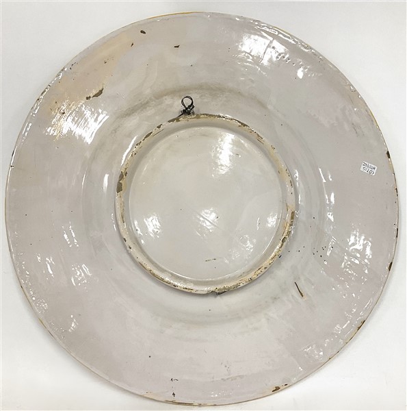Manifattura del secolo XX. Coppia di grandi piatti da parete in maiolica policr