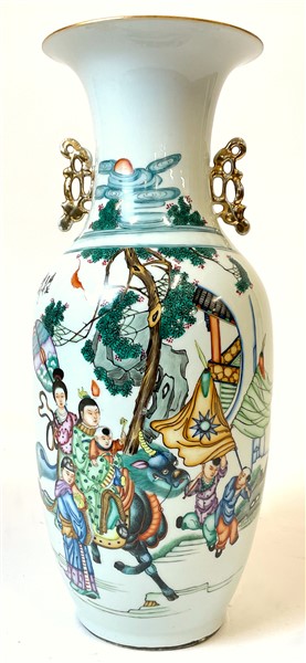 Vaso in porcellana policroma decorato con personaggi e scritte Cina, secolo XX