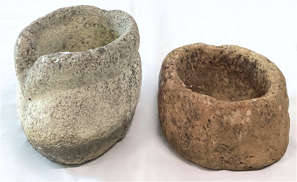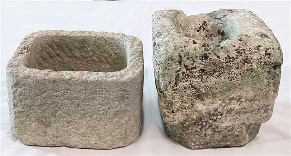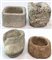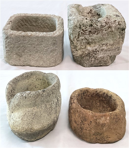 Lotto composto da tre diversi vasi e parte di un capitello in pietra scolpita di diversa forma ed epoca (cm max 32,5x18x28) (gravi difetti)