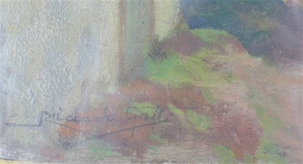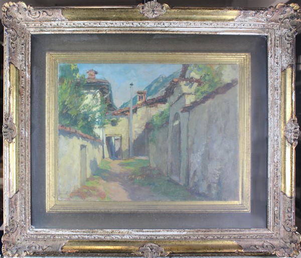 Riccardo Galli "Viottolo a Barzio" olio su compensato (cm 25x35) firmato in bas