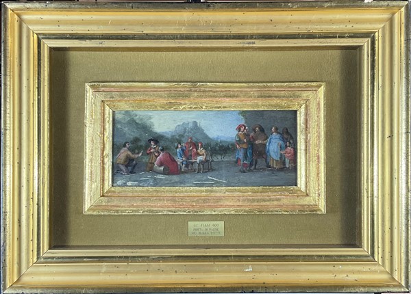 Ignoto"Scena di genere" olio su tavola (cm 14x29) in cornice (difetti)