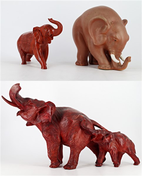 Lotto composto da tre sculture di elefanti di misure e materiali differenti (di