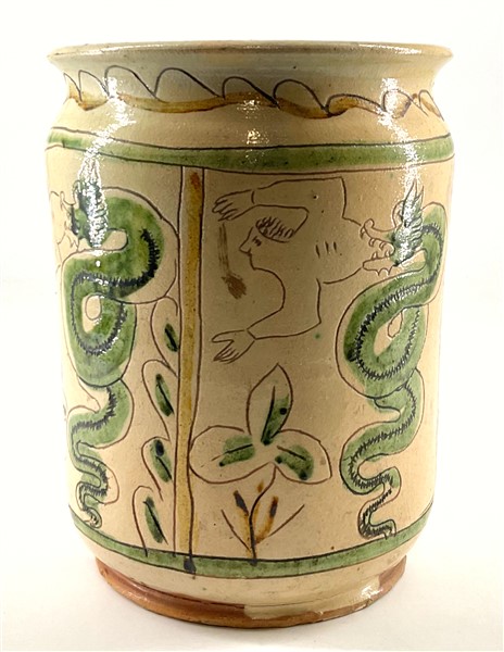 Lotto di diversi oggetti in metalli vari e metallo argentato ed un albarello in ceramica con stemma degli Sforza (difetti)